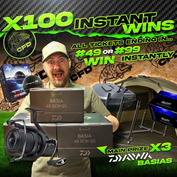 The live draw will take place on the Carp Fishing Draws Facebook page using Google’s random number generator to select the winning ticket number from all Entrants.