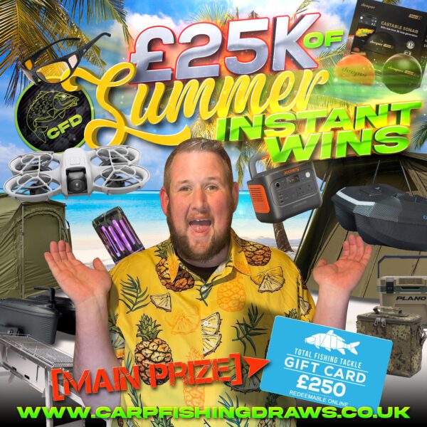 The live draw will take place on the Carp Fishing Draws Facebook page using Google’s random number generator to select the winning ticket number from all Entrants.