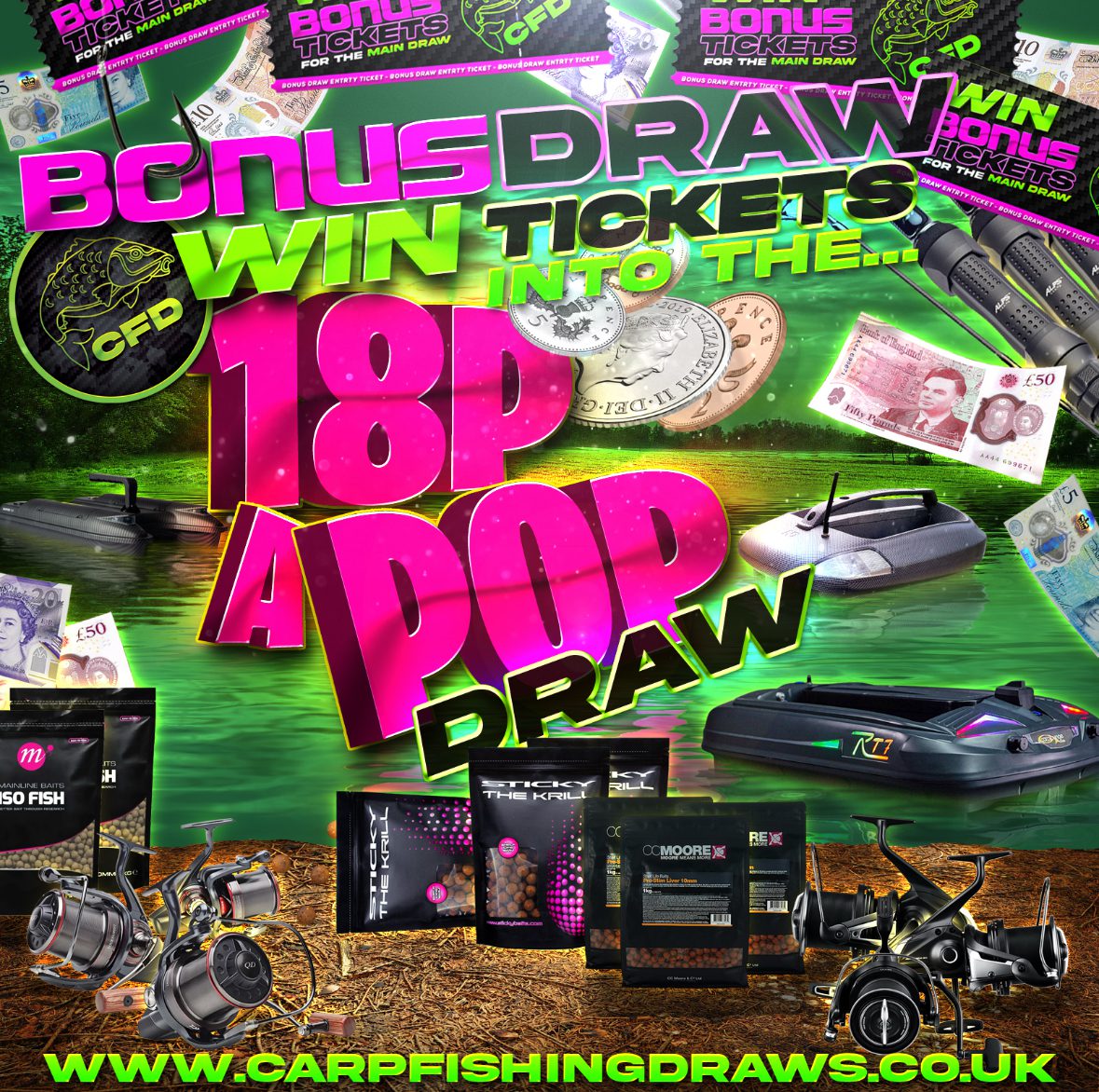 The live draw will take place on the Carp Fishing Draws Facebook page using Google’s random number generator to select the winning ticket number from all Entrants.