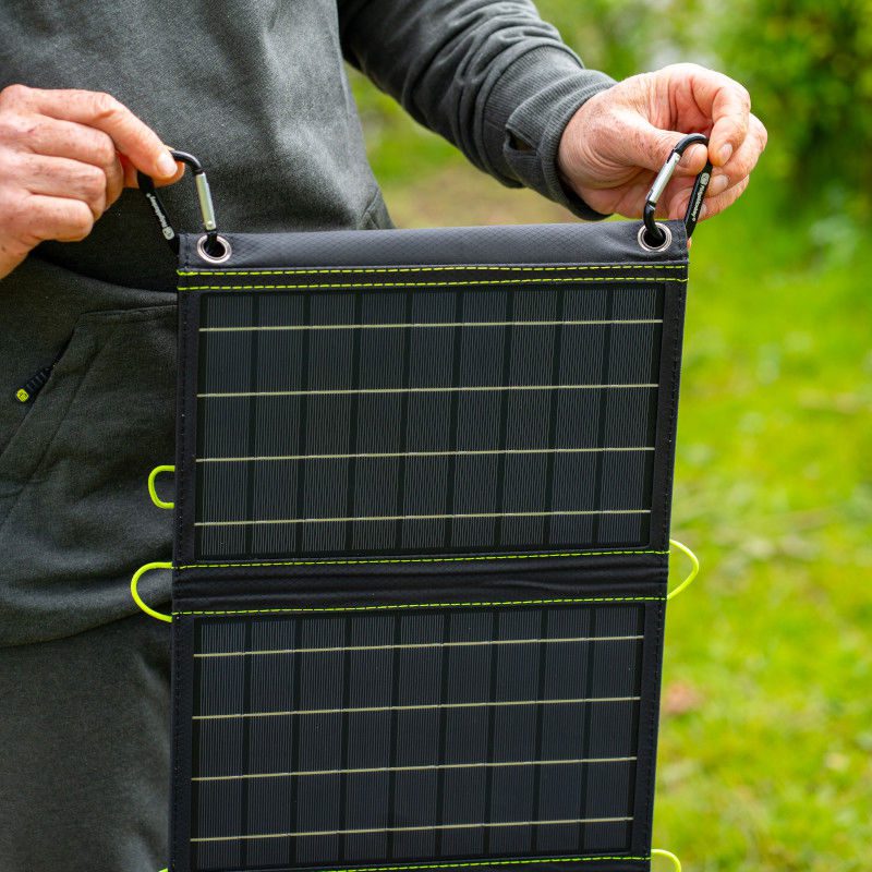 The Ridge Monkey Vault QC3.0 USB-A 21W Solar Panel, the ultimate answer to keeping your gadgets and accessories topped up on the bank. A compact fold out space saving design that’s capable of charging two devices at once. Automatically detecting and changing once a device is plugged in, and automatically delivering the optimal charging current. With two carabiners included so you can easily hang them somewhere in direct sunlight.