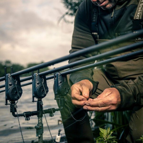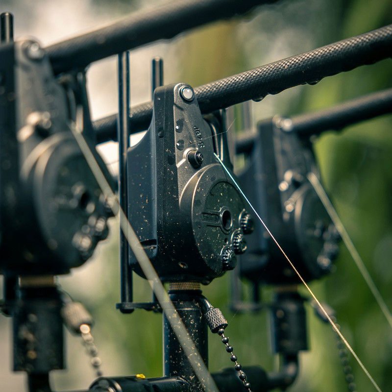 The Trakker DB7-R 3 Rod Bite Alarm Set, released following 5 years of exhaustive development, and testing time out on the bank by their dedicated team of pro anglers. With a lot of manufacturers now selling overcomplicated bite alarms with features you’ll never use or need. Trakker have refined these alarms to include technology and advances that you will genuinely find useful in your fishing. Starting with the strong water resistant IPX68 rated ABS casing, and with additional waterproofing protecting the digital circuitry inside. Bite detection is given by a roller wheel with eight individual magnets, offering a matching eight differing levels of sensitivity. They will give an audible tone and visual difference between forward runs and drop backs, with the LEDs’s flashing for a run, and going solid for a dropback. Those same settings are replicated on the receiver box, with automatic synching to your alarm head LED colour choices .