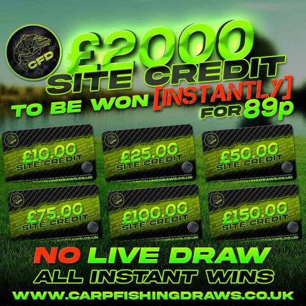 The live draw will take place on the Carp Fishing Draws Facebook page using Google’s random number generator to select the winning ticket number from all Entrants.