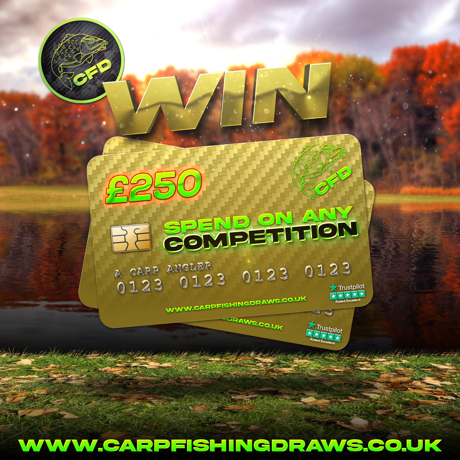 You may enter the competition online or for free by post by sending your entry to Carp Fishing Draws on a postcard. You must have an account on Carp Fishing Draws for your entry to be processed. All details on your entry MUST correspond to the details on your account to receive the order confirmation and ticket number. Postal entries received without a registered account cannot be processed.