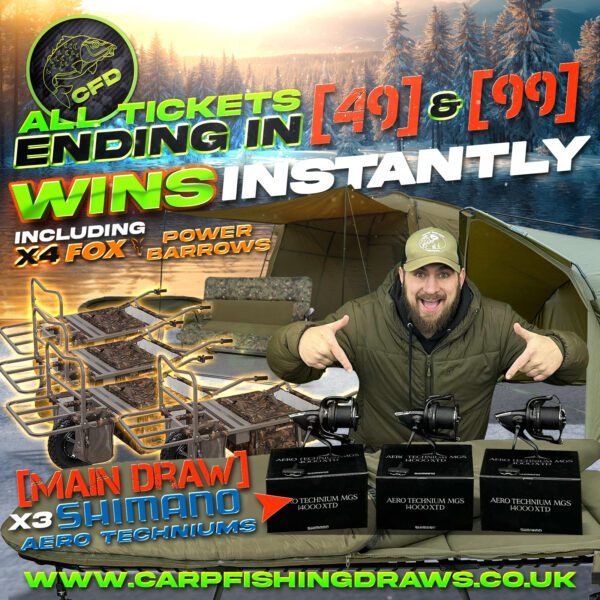 The live draw will take place on the Carp Fishing Draws Facebook page using Google’s random number generator to select the winning ticket number from all Entrants.