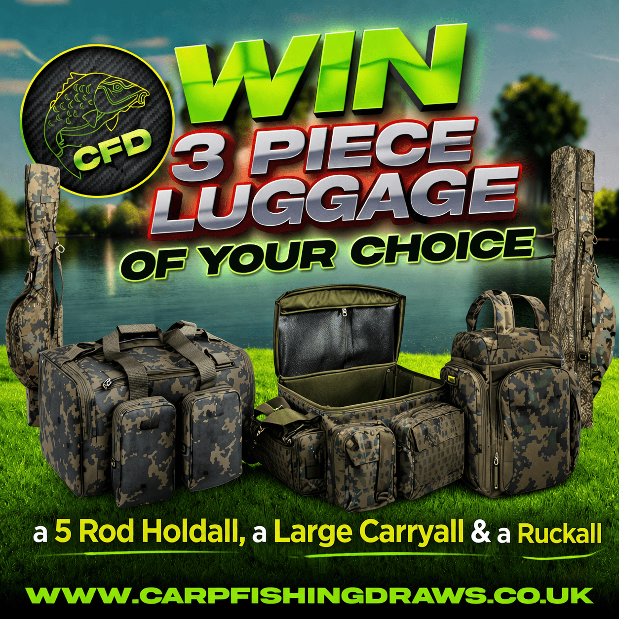 The live draw will take place on the Carp Fishing Draws Facebook page using Google’s random number generator to select the winning ticket number from all Entrants.