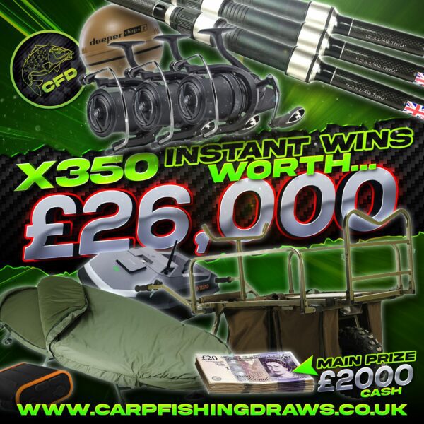 The live draw will take place on the Carp Fishing Draws Facebook page using Google’s random number generator to select the winning ticket number from all Entrants.