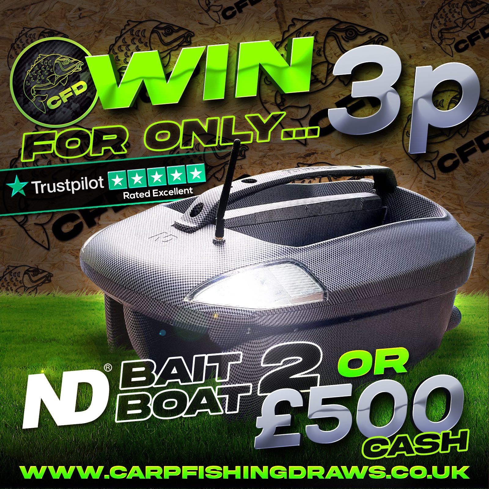 The live draw will take place on the Carp Fishing Draws Facebook page using Google’s random number generator to select the winning ticket number from all Entrants.