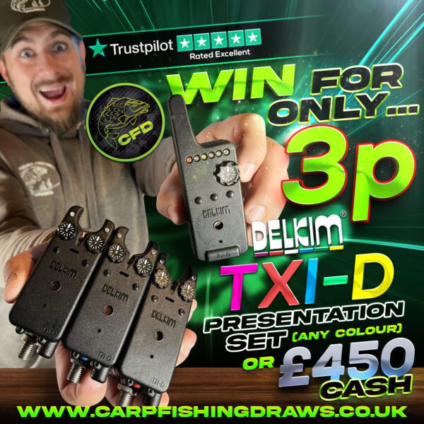 The live draw will take place on the Carp Fishing Draws Facebook page using Google’s random number generator to select the winning ticket number from all Entrants.