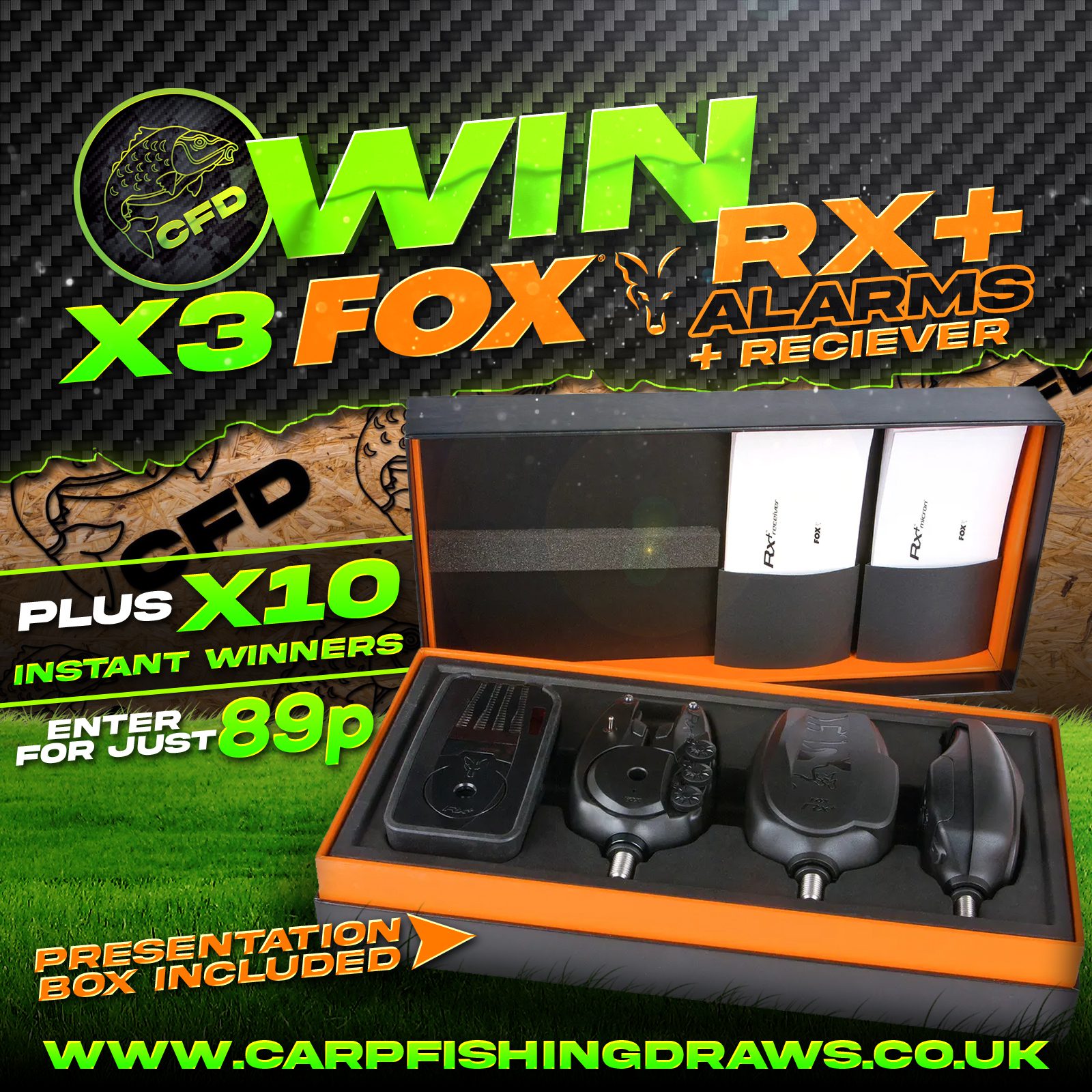 The live draw will take place on the Carp Fishing Draws Facebook page using Google’s random number generator to select the winning ticket number from all Entrants.