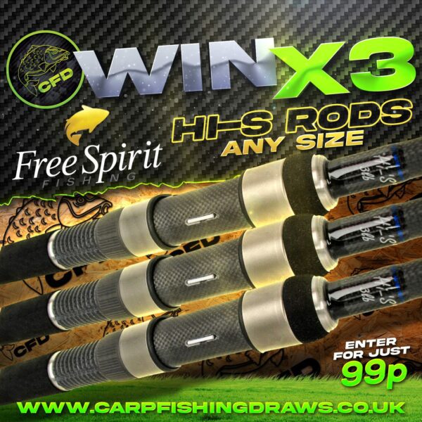 The live draw will take place on the Carp Fishing Draws Facebook page using Google’s random number generator to select the winning ticket number from all Entrants.