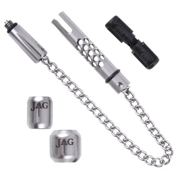– To adjust chain length – each safeliner has built in hexagon key in the end of thread connector. Use one safeliner on next safeliner to remove small screw (do not drop it!), cut down chain with Korda crimp pliers or similar and re-attach with screw.