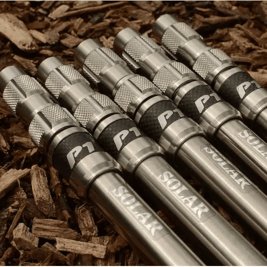 Made in England, as always Preceision engineered and CAD designed Made from the highest quality stainless steel components The Travel Lite has become the ‘industry standard’ and the only choice for the many anglers when it comes to ‘single stick’ set ups, being extremely lightweight and long lasting. The new P1 Travel Lite Banksticks now incorporate our ‘5 Spoke, Diamond Grip Adjustment’ collars and we have further improved the internal locking system, which was already acclaimed as one of the best on the market. The streamlined design alleviates any potential line snags that can occur with thumbscrew-type banksticks. We have retained our original ‘Ground Driver’ point, which has proved perfect for even the hardest of grounds. These features coupled with the 1K carbon detailing makes the P1 Travel Lites stand out from the crowd, giving the looks and finish to match the top-end performance.