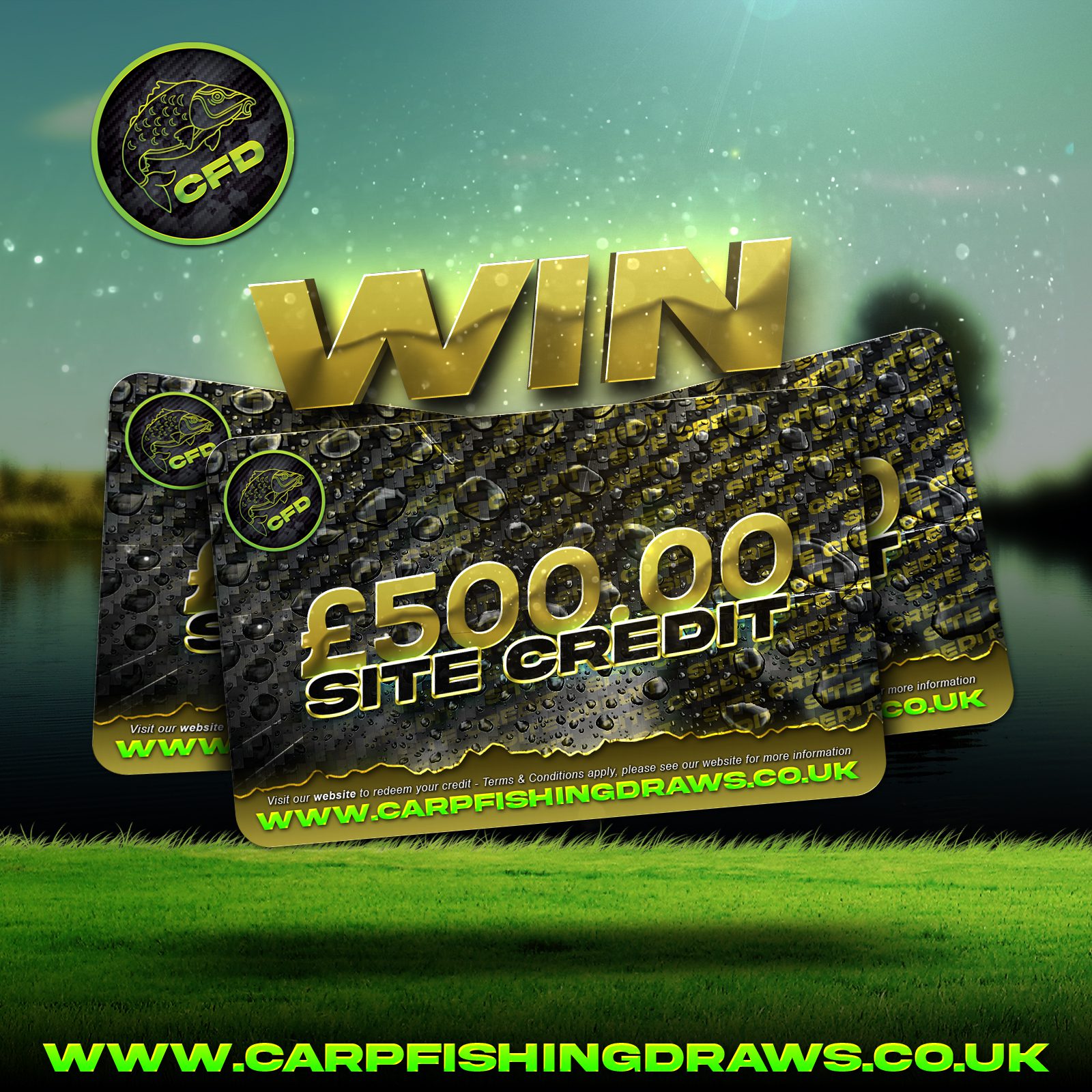 The live draw will take place on the Carp Fishing Draws Facebook page using Google’s random number generator to select the winning ticket number from all Entrants.