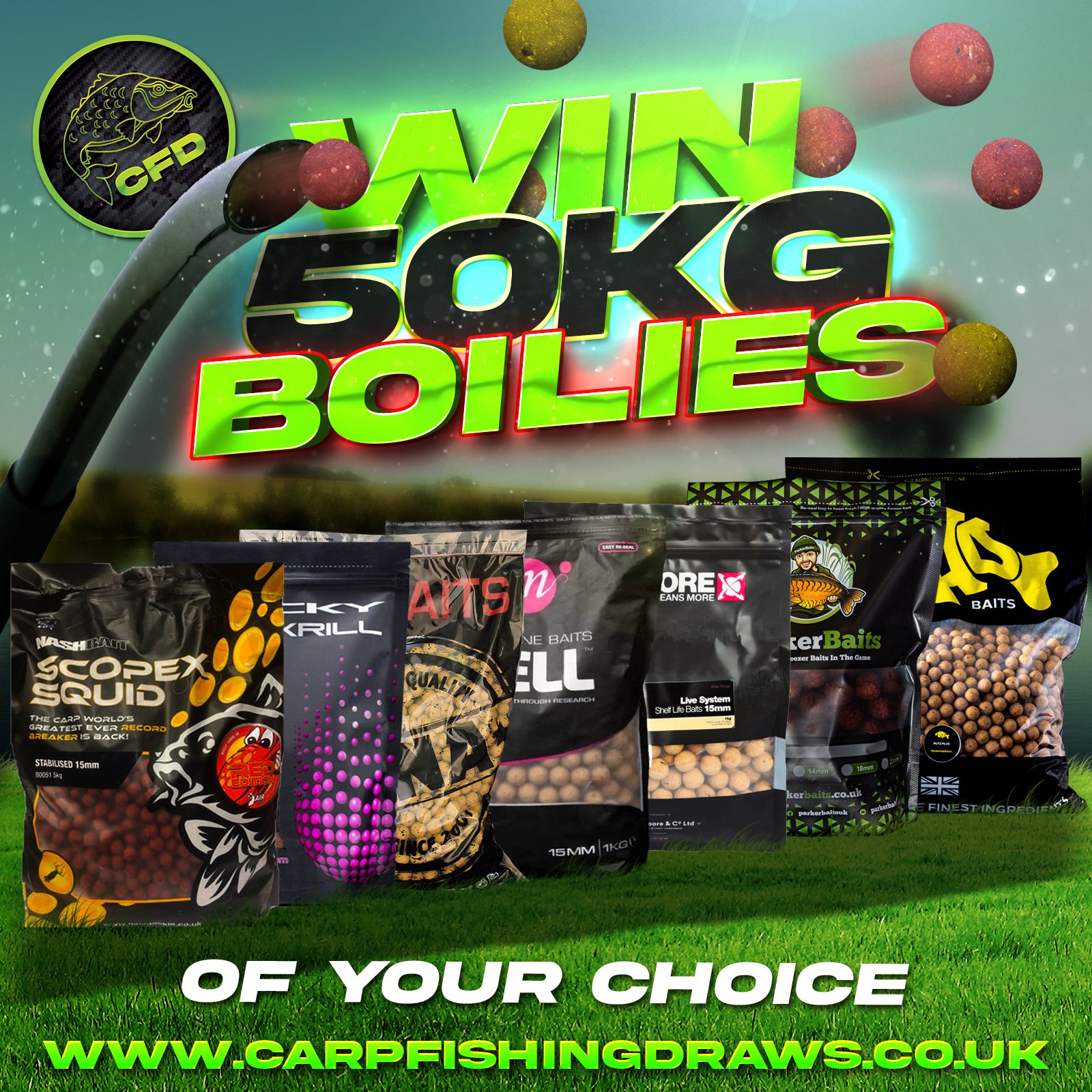 You may enter the competition online or for free by post by sending your entry to Carp Fishing Draws on a postcard. You must have an account on Carp Fishing Draws for your entry to be processed. All details on your entry MUST correspond to the details on your account to receive the order confirmation and ticket number. Postal entries received without a registered account cannot be processed.