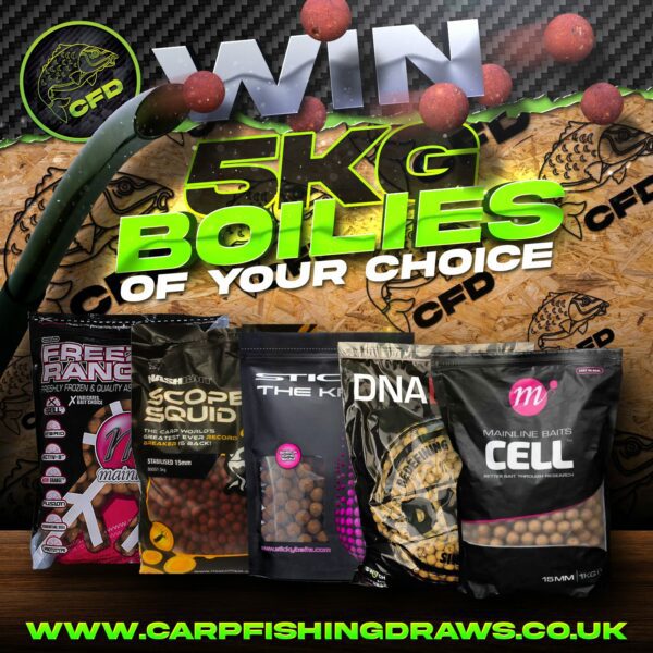 The live draw will take place on the Carp Fishing Draws Facebook page using Google’s random number generator to select the winning ticket number from all Entrants.