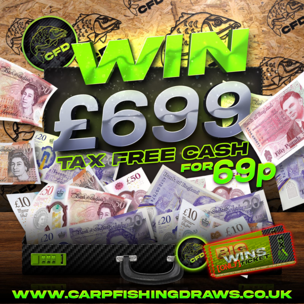The live draw will take place on the Carp Fishing Draws Facebook page using Google’s random number generator to select the winning ticket number from all Entrants.