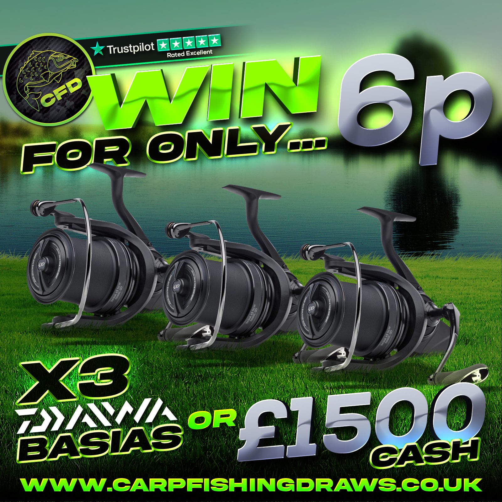 The live draw will take place on the Carp Fishing Draws Facebook page using Google’s random number generator to select the winning ticket number from all Entrants.