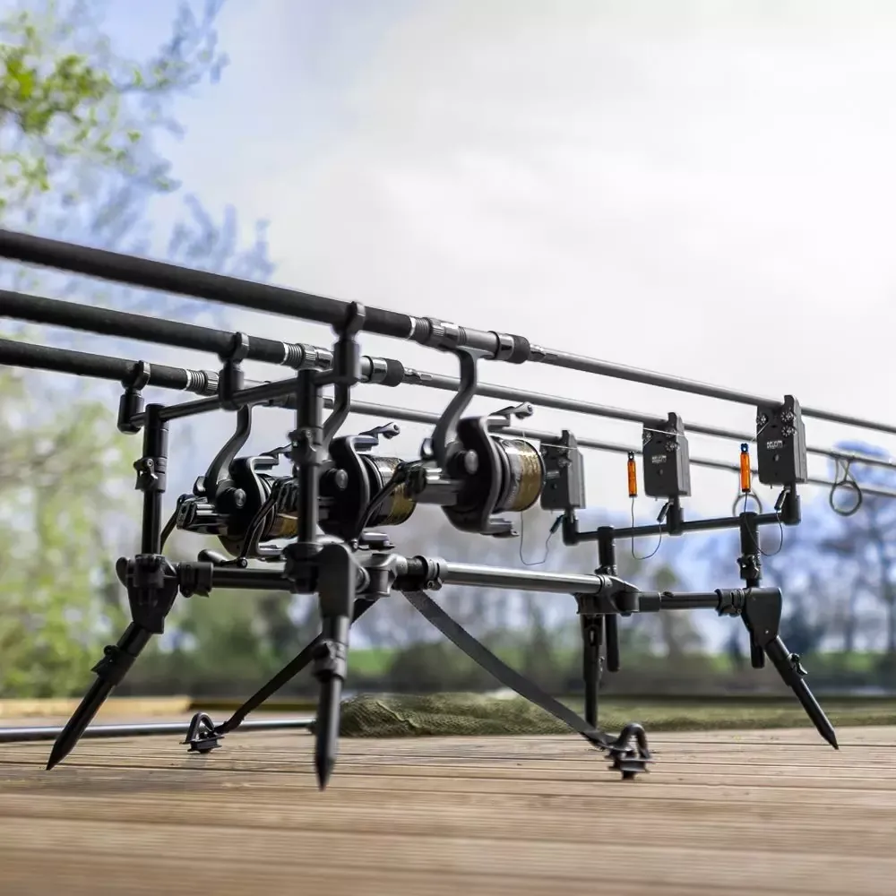 Well fully set up, the rod pod features an adjustable double centre/ main bar and comes with 11 and 12 three-rod buzz bars so you can achieve the perfect start to a session and assist you in angling your rods correctly no mater the water scenario.