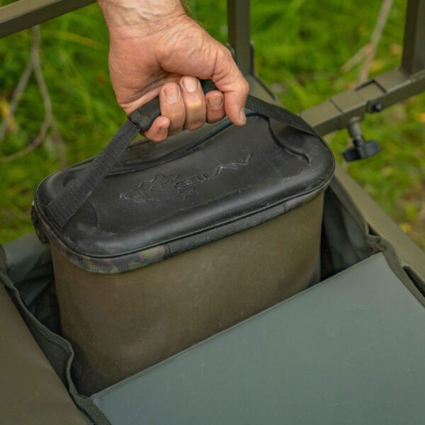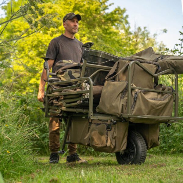 The Avid Carp Revolve Session Barrow gives you a rock solid reliable platform for transporting everything you need for your next session. Featuring extendable front and side bars to accommodate larger luggage items. Supplied with two easily accessible bags on either side of the front wheel and an easily accessible removable underbarrow bag for extra storage. All protected from the elements by a waterproof covering over the base. With adjustable height handles and short rear legs for increased stability and ground clearance.