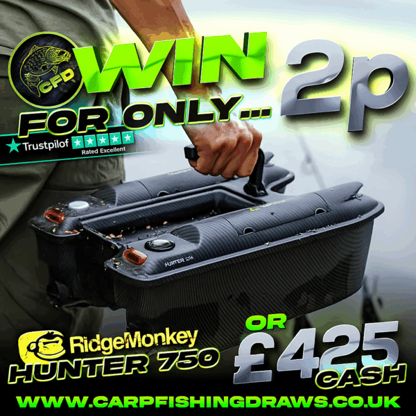 The live draw will take place on the Carp Fishing Draws Facebook page using Google’s random number generator to select the winning ticket number from all Entrants.