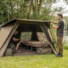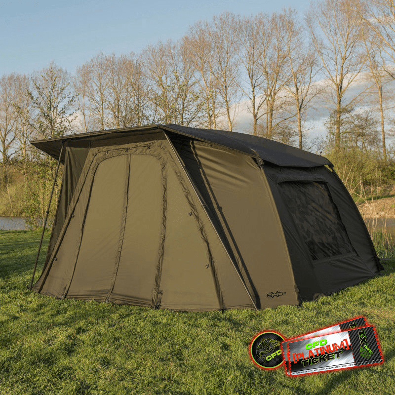 The Avid Carp Exo 2 Bivvy System is a generously sized shelter with plenty of room for two anglers, plus tackle. Featuring an ultra quick set up time with innovative self-locating corner blocks and patented boss design. Manufactured from a high performance 20,000mm HH khaki brown EX material, with reinforced pegging points and fabric webbing adjusters. With four separate camo mosquito vents for optimal airflow. Supplied with a wide range of accessories including a heavy duty groundsheet, solid infill panel with two door options and a storage bag. They’ve also thrown in two storm poles, a storm cap, heavy duty pegs, and a fabric tension strap