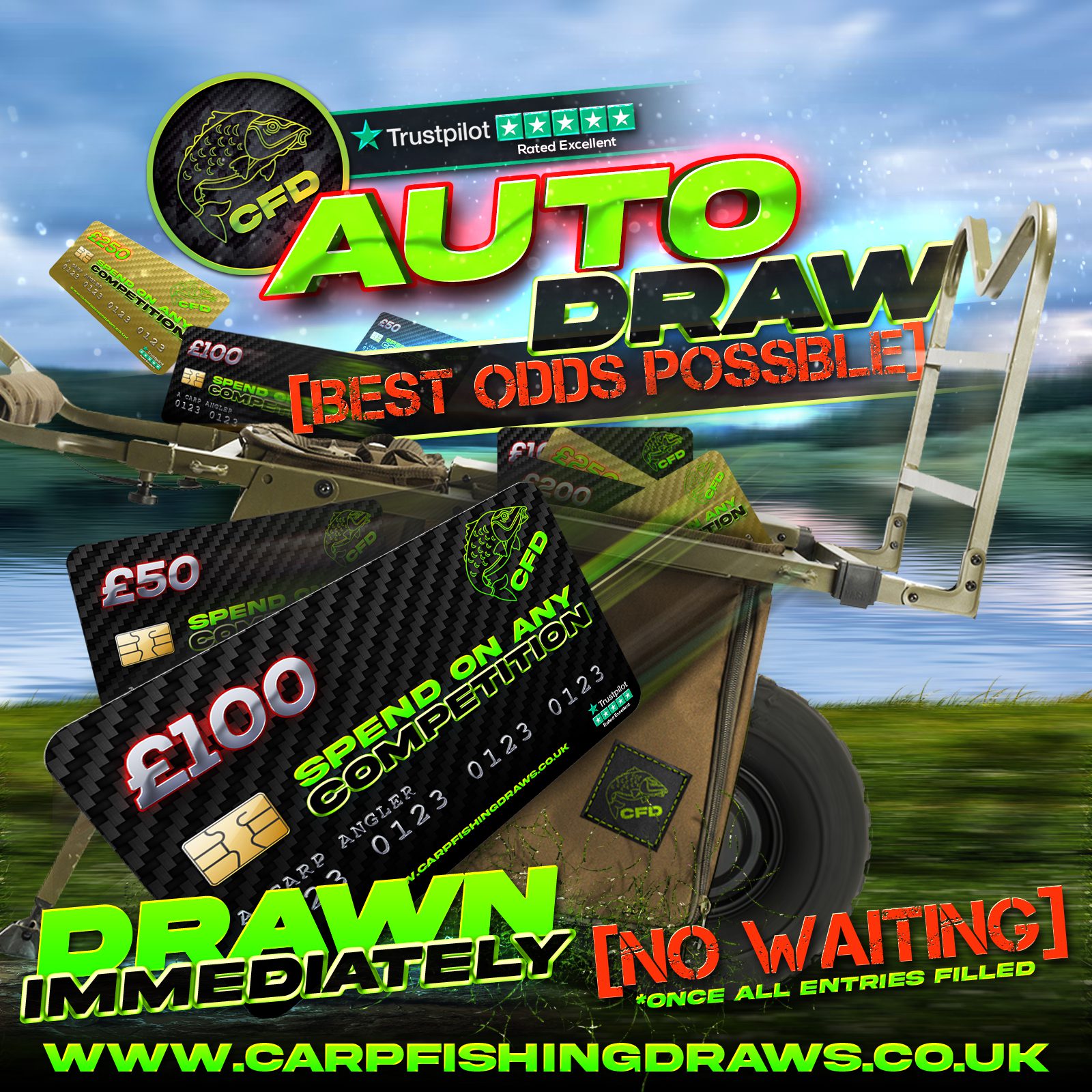 The live draw will take place on the Carp Fishing Draws Facebook page using Google’s random number generator to select the winning ticket number from all Entrants.
