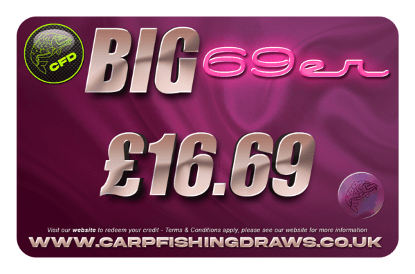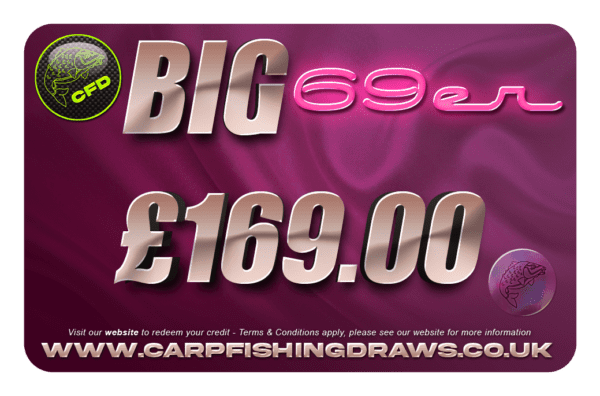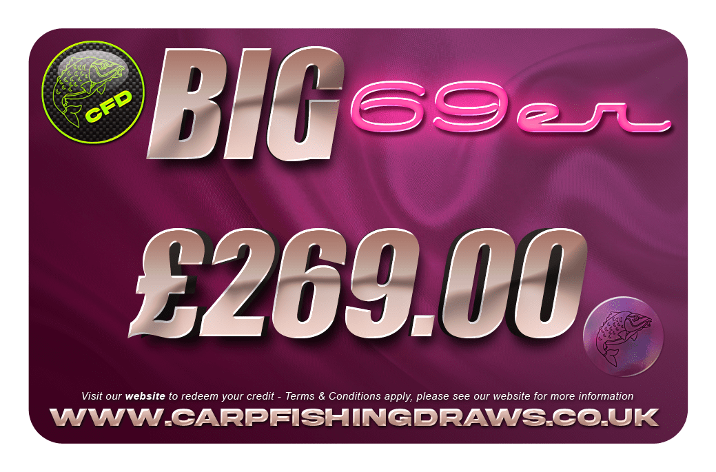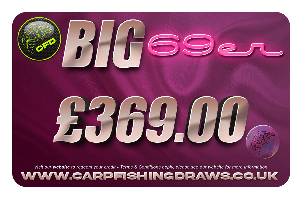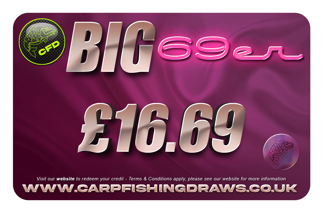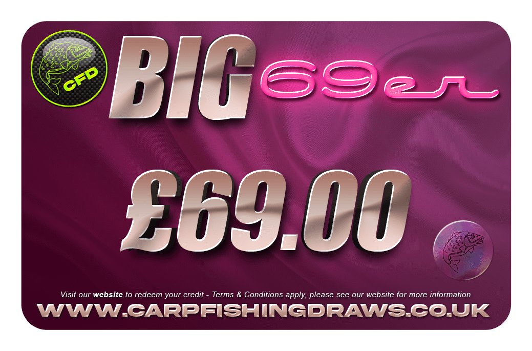 The live draw will take place on the Carp Fishing Draws Facebook page using Google’s random number generator to select the winning ticket number from all Entrants.