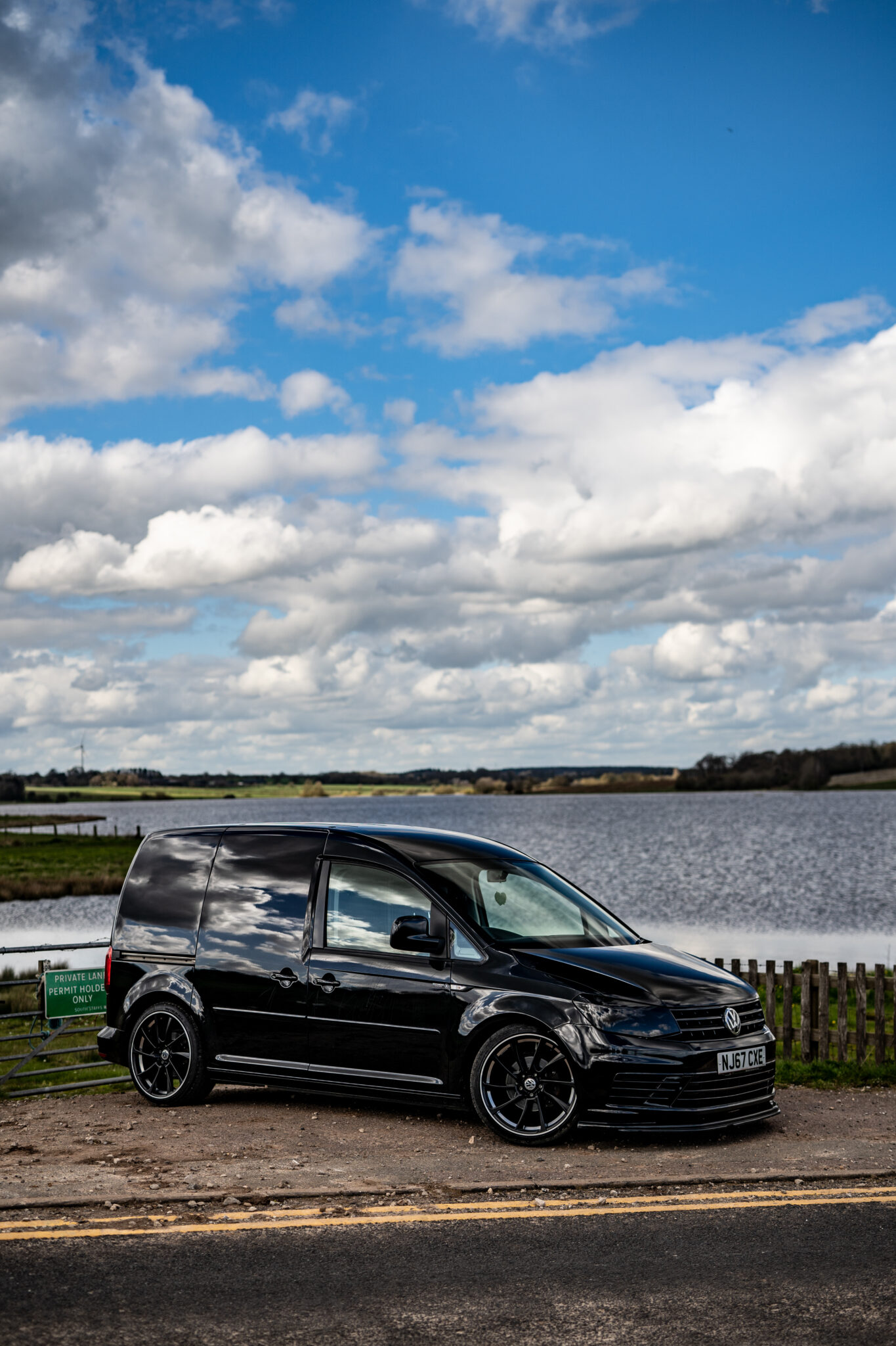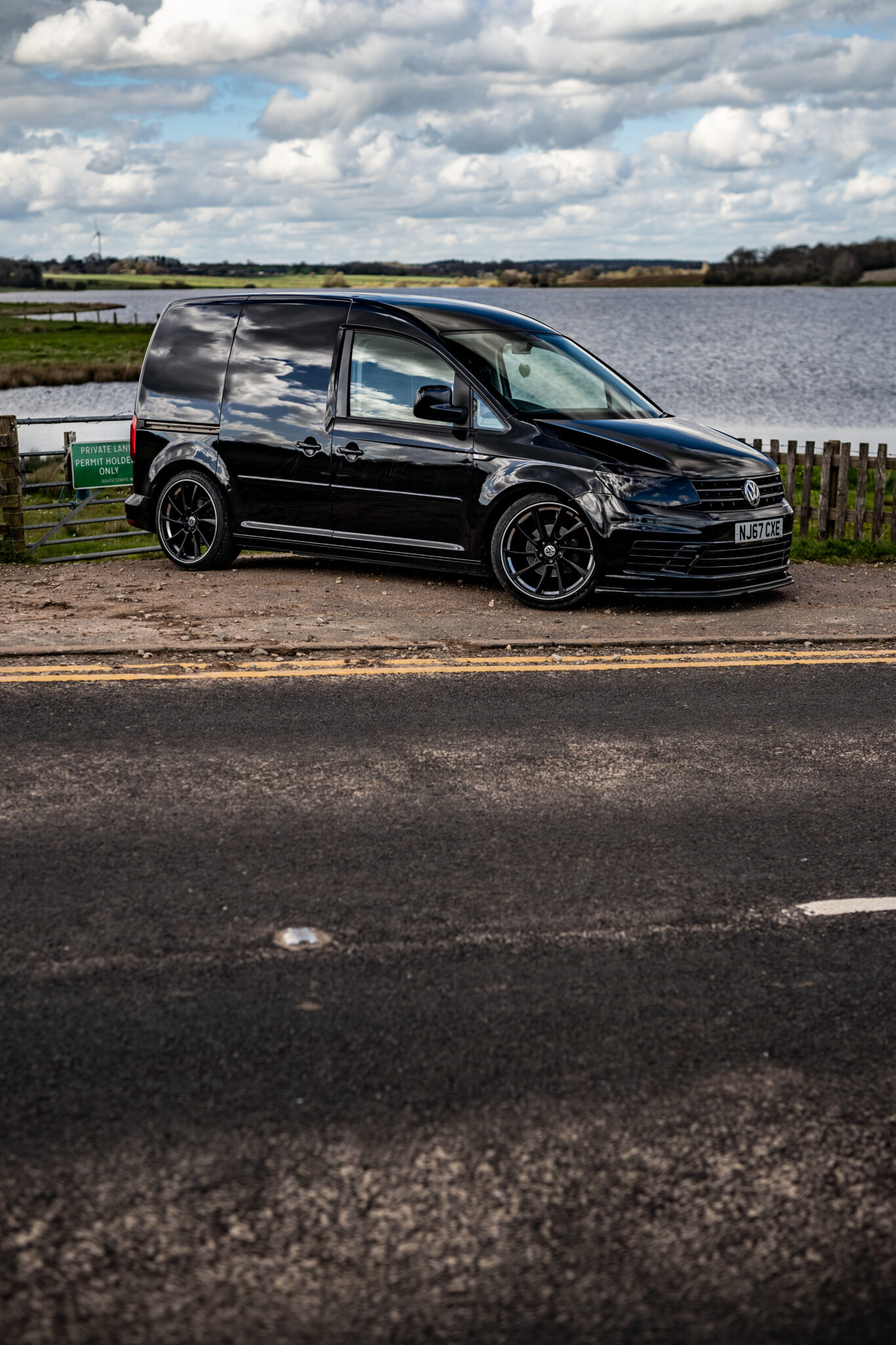 This Particular Caddy is a Luxury ONE OWNER FROM NEW Vehicle, Metallic deep black pearl in Colour, 2 side loading doors, BRAND NEW 19 INCH WHEELS AND TYRES Alloys, Bentley Style Leather Seats, Upgraded Colour Coded Bumpers, Lowered 75mm on PROSPORT Coilovers Front & Rear, Colour Coded Rear Spoiler, ABS Gloss Black Splitter Spoiler, ABS Front Splitter, Gloss Black Grills.