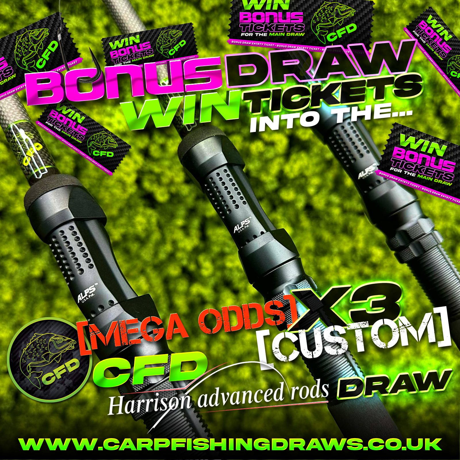 The live draw will take place on the Carp Fishing Draws Facebook page using Google’s random number generator to select the winning ticket number from all Entrants.