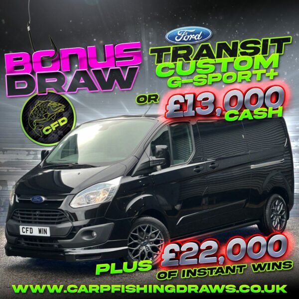The live draw will take place on the Carp Fishing Draws Facebook page using Google’s random number generator to select the winning ticket number from all Entrants.