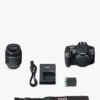 This kit includes two lenses. Canon’s 18-55mm lens is a great all-rounder. Its large f3.5 – f5.6 aperture range gives you beautiful landscape and portrait shots, while its built-in image stabiliser protects against handshake. The large f/1.8 aperture of the 50mm lens also included produces artistic photography with sharp focus on the subject against a beautifully soft background.