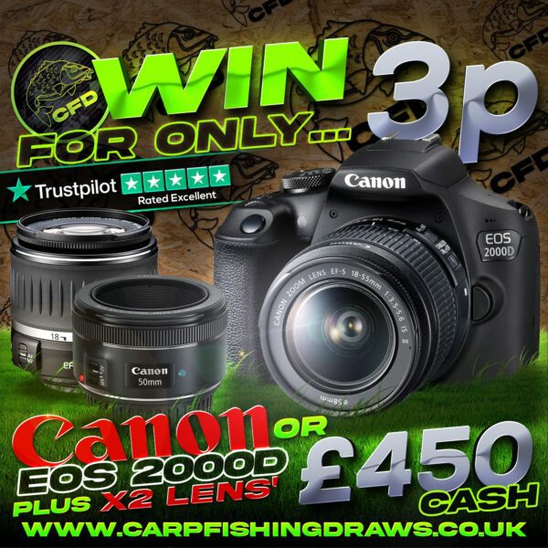 The live draw will take place on the Carp Fishing Draws Facebook page using Google’s random number generator to select the winning ticket number from all Entrants.
