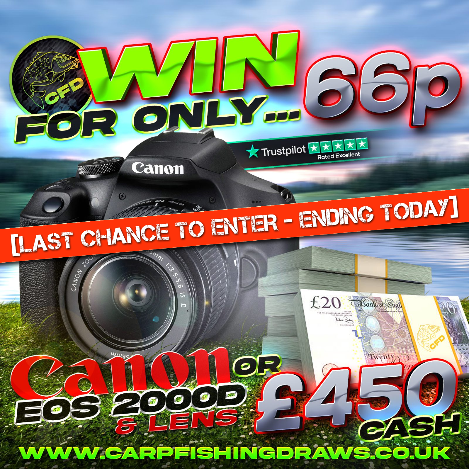 The live draw will take place on the Carp Fishing Draws Facebook page using Google’s random number generator to select the winning ticket number from all Entrants.