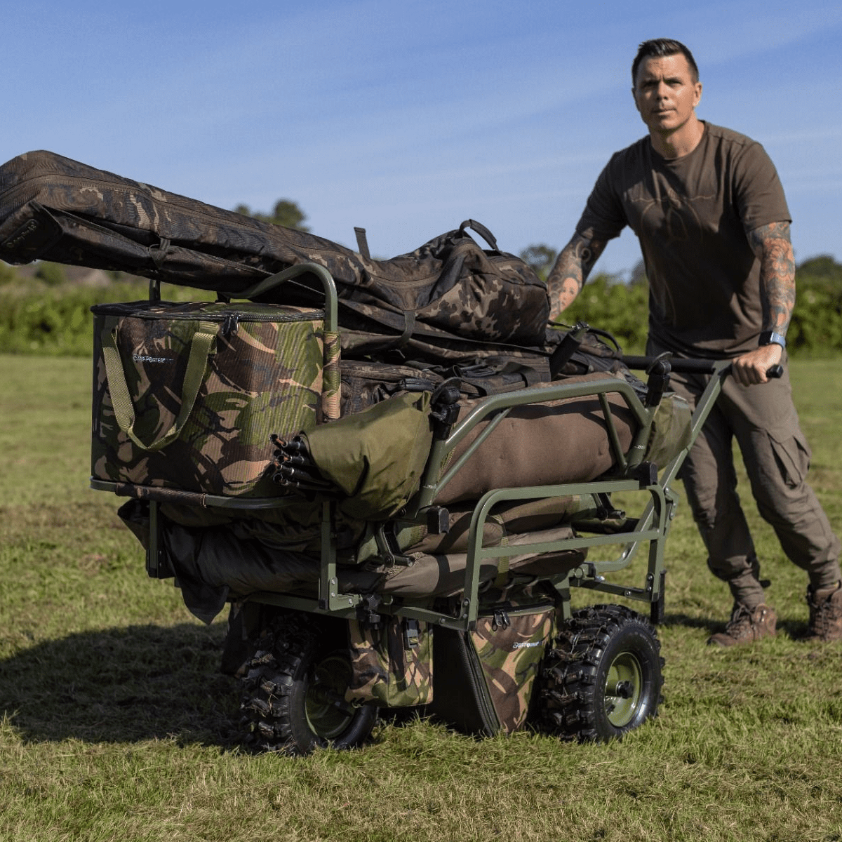 This barrow has proven extremely popular since its recent introduction. The frame is based on the mk2 fat boy and has the massive advantage that all the Carp Porter accessories including DPM fit.