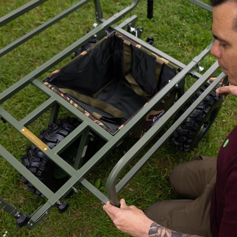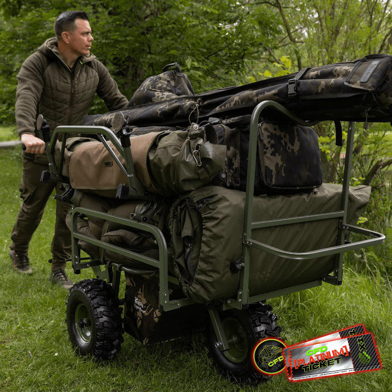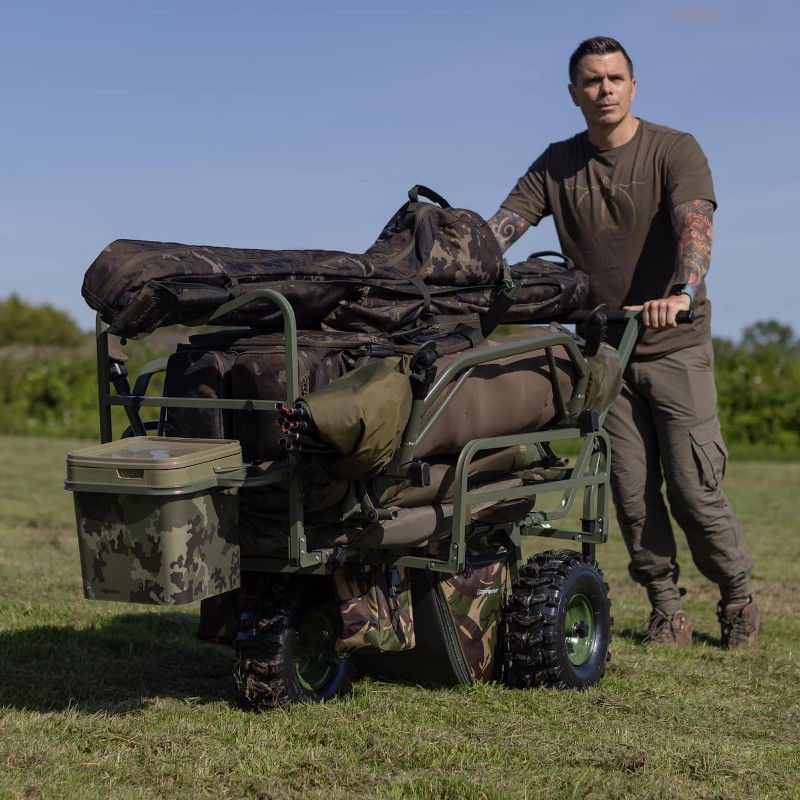 The Carp Porter Big Boy DPM, 3 wheeled stability with the popular MK2 Fat boy frame. Carrying a number of upgrades including locking rear legs and an extra long front bar.ย ย Compatible with the entire range of Carp Porter MK2 luggage and accessories. They come supplied with a drop in zip up camo bag that sits neatly into the base. These versions also come with Carp Porters all terrain deep tread tyres as standard, offing a much improved grip and confidence on slippery muddy surfaces.