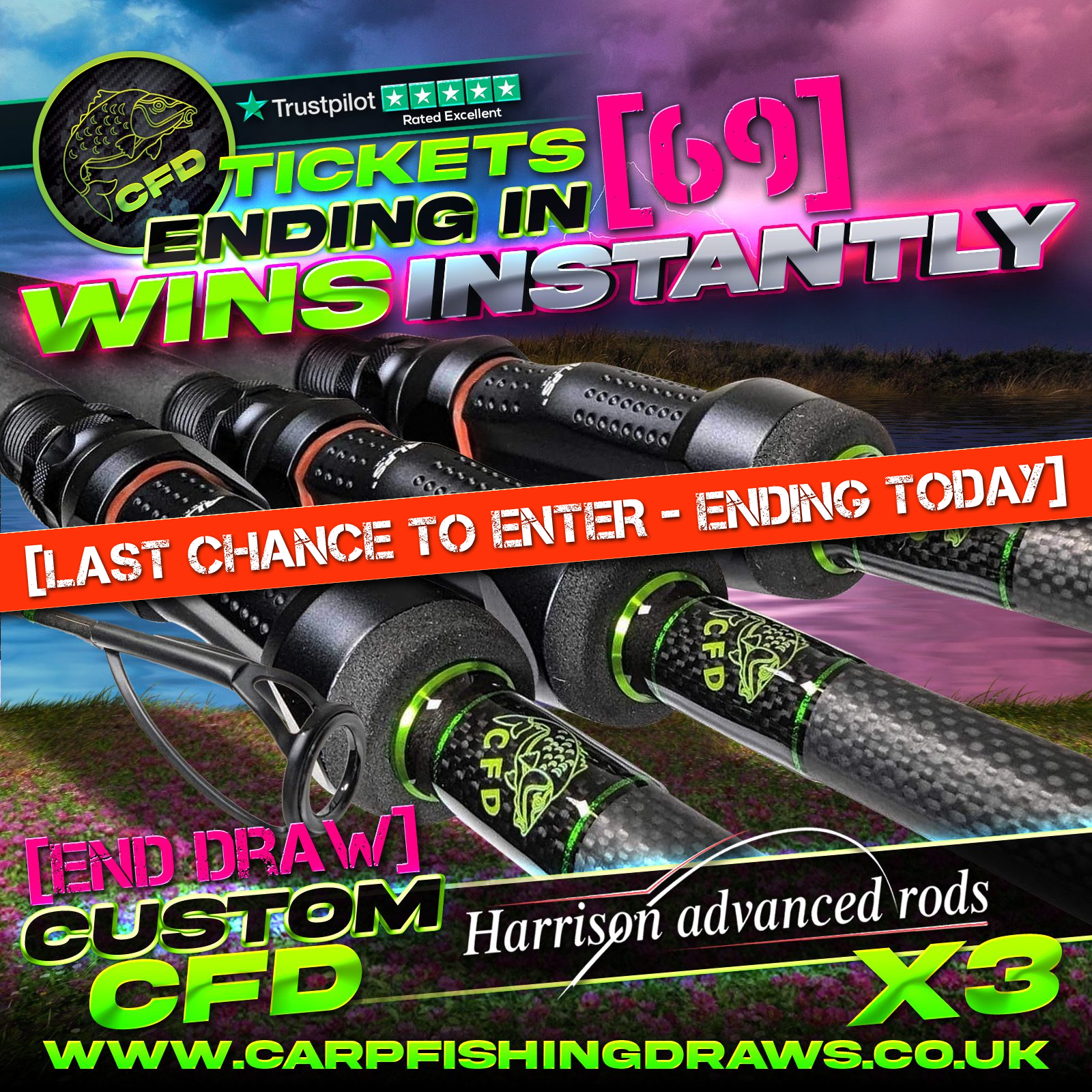 The live draw will take place on the Carp Fishing Draws Facebook page using Google’s random number generator to select the winning ticket number from all Entrants.