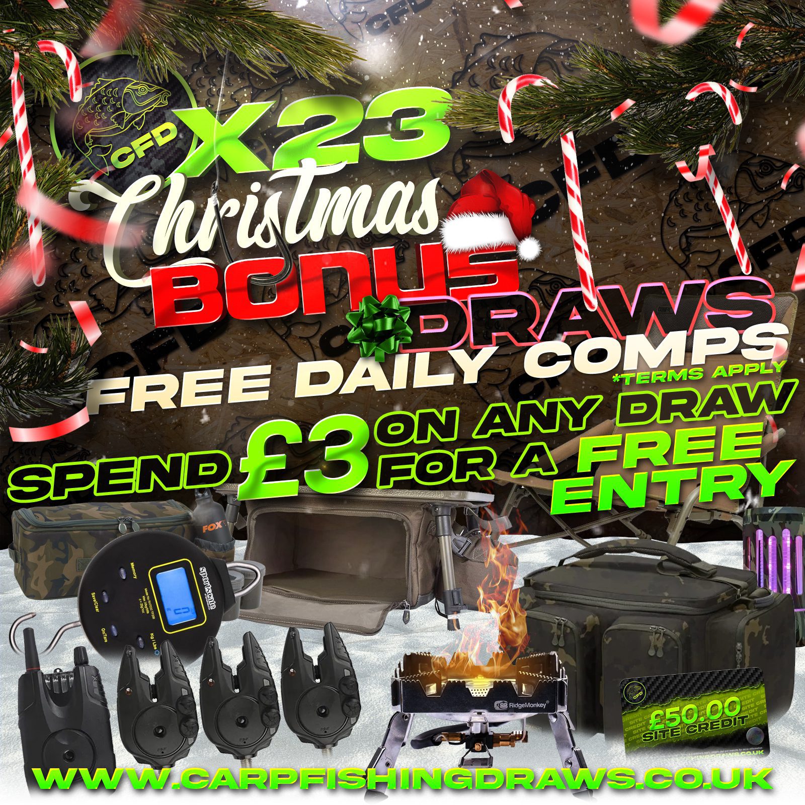 The live draw will take place on the Carp Fishing Draws Facebook page using Google’s random number generator to select the winning ticket number from all Entrants.