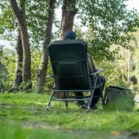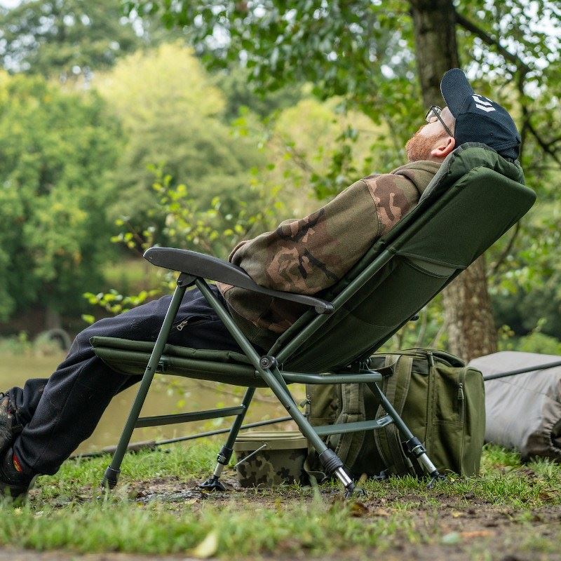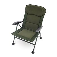 The Daiwa Black Widow Adjustable Arm Chair, comfortable padded bankside seating with four levels of adjustment. With four spring locking tilting mud feet to get you level on uneven ground and extra padding behind your head.