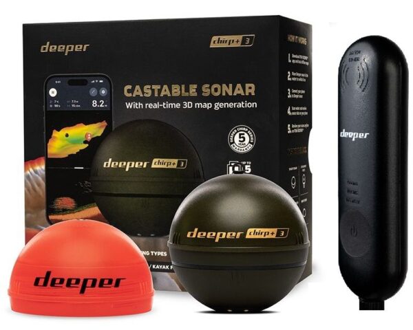 The Deeper Chirp+ 3 Sonar brings incredible detail of your venue with bathymetry mapping generating live 3D maps and giving an accurate picture of bottom structure, depth, and hill slopes. An ultra-precise 1cm target separation that allows you to distinguish even the smallest fish, pinpointing targets to maximise your catch efficiency. Featuring three beam frequencies, a wide beam for quick area scanning. A mid-point beam for balanced detail and a narrow beam for pinpoint accuracy. Simply pair with the Fish Deeper app on your smartphone, and you’re ready to go.