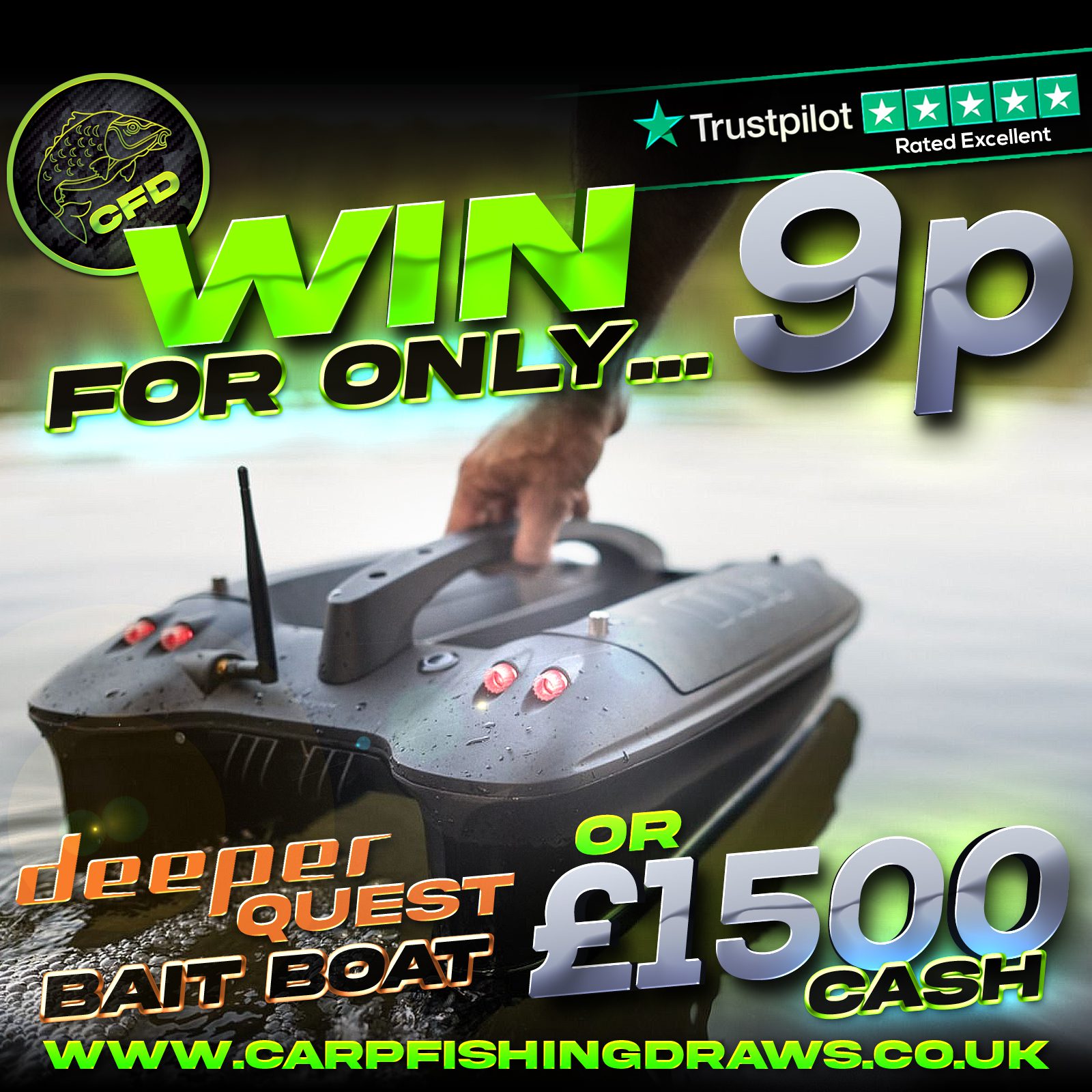 The live draw will take place on the Carp Fishing Draws Facebook page using Google’s random number generator to select the winning ticket number from all Entrants.
