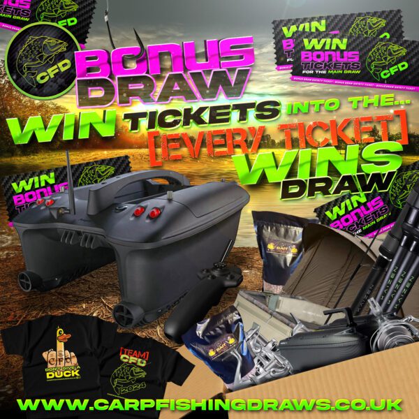 The live draw will take place on the Carp Fishing Draws Facebook page using Google’s random number generator to select the winning ticket number from all Entrants.