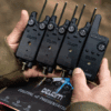 The Delkim TXi-D v2 Digital Presentation Set gives you the very latest in advanced bite alarm technology for anglers. With considerable effort going into simplifying the user interface, and with improvements in the production line and assembly process. Retaining a lot of the features offered with the the original Txi-D and Rx-D series. With the new V2 set giving multi colour LED colour choices on each alarm head, a first for Delkim. These light choices are reflected on the Rx-D v2 Receiver that also now has a Quick Torch function that illuminates all the LEDs to help find your way if you’ve dropped your actual torch. Each set comes supplied with three individual alarm heads, plus a receiver along with Safe-D Carbon Snag Bars and hard case covers for the alarms and receiver.