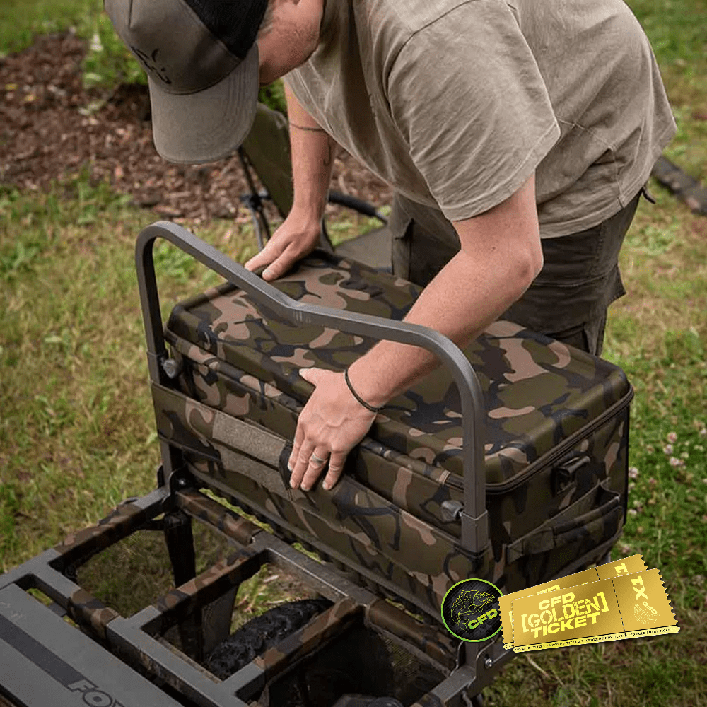 Fox have made this barrow bag uncompromising in its durability, with heavy duty double 10mm zips ensuring complete reliability and allowing quick access to your fishing equipment. Same as the rest of the Fox Camolite Fishing Luggage range, this barrow bag has been constructed using a hardwearing and water resistant 500D treated polyester fabric. To ensure this barrow bag fits securely onto your fishing barrow there is a strap at the rear of the barrow bag. Finished off in the unique Fox Camo pattern, the Fox Camolite Barrow Organiser is a must have addition to any anglers carp fishing tackle.