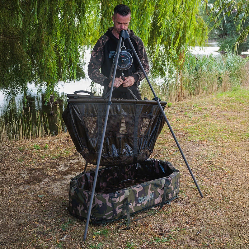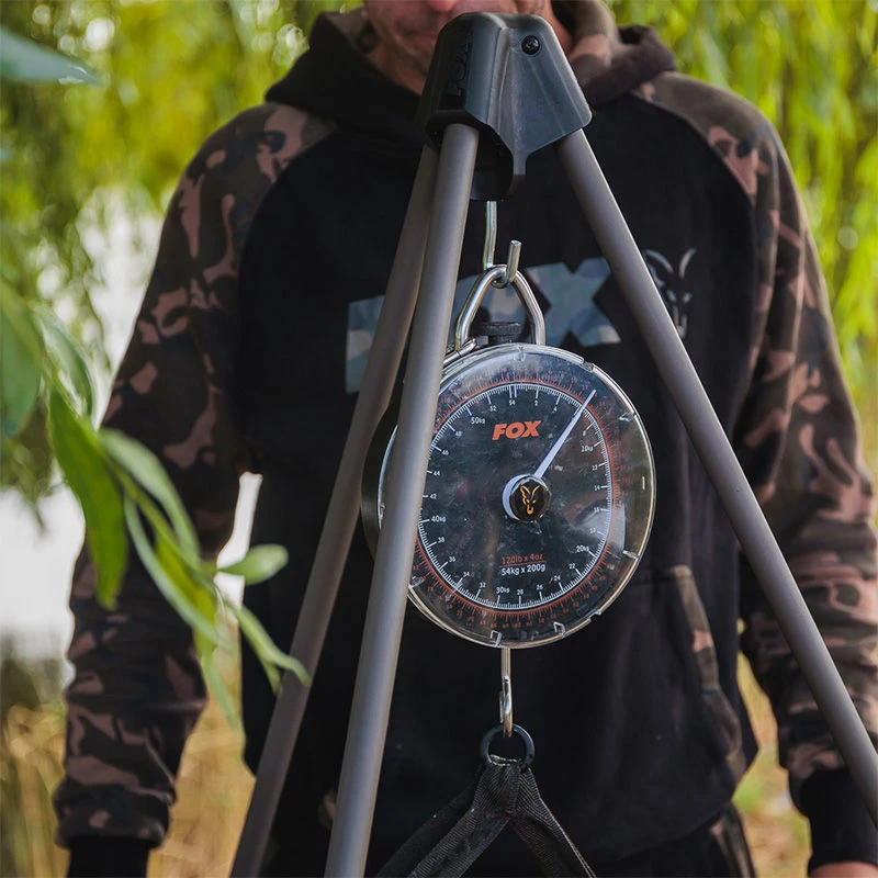 The Fox Carpmaster Tripod is a heavy duty but surprisingly light Tripod ideal for taking the strain when weighing heavy carp. Rated for fish up to up to 60kg, and featuring a compact pack down size due to the extending telescopic leg design. With a moulded boss, stainless steel weighing hook and 3/8 thread in the top for adding accessories.