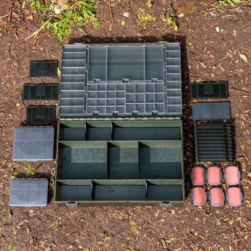 The fully loaded edition of the FoxΒ Edges Large Tackle Box comes supplied with two accessory boxes, a leader rack plus 6 individual hook boxes. With plenty of room inside to store a wide variety of end tackle, tools and components. Manufactured from a tough smoked tinted plastic, and with the addition of a VCI Volatile Corrosion Inhibitor that actively prevents rusting of metal. With all the compartments designed to take the Edges internal boxes and accessories.
