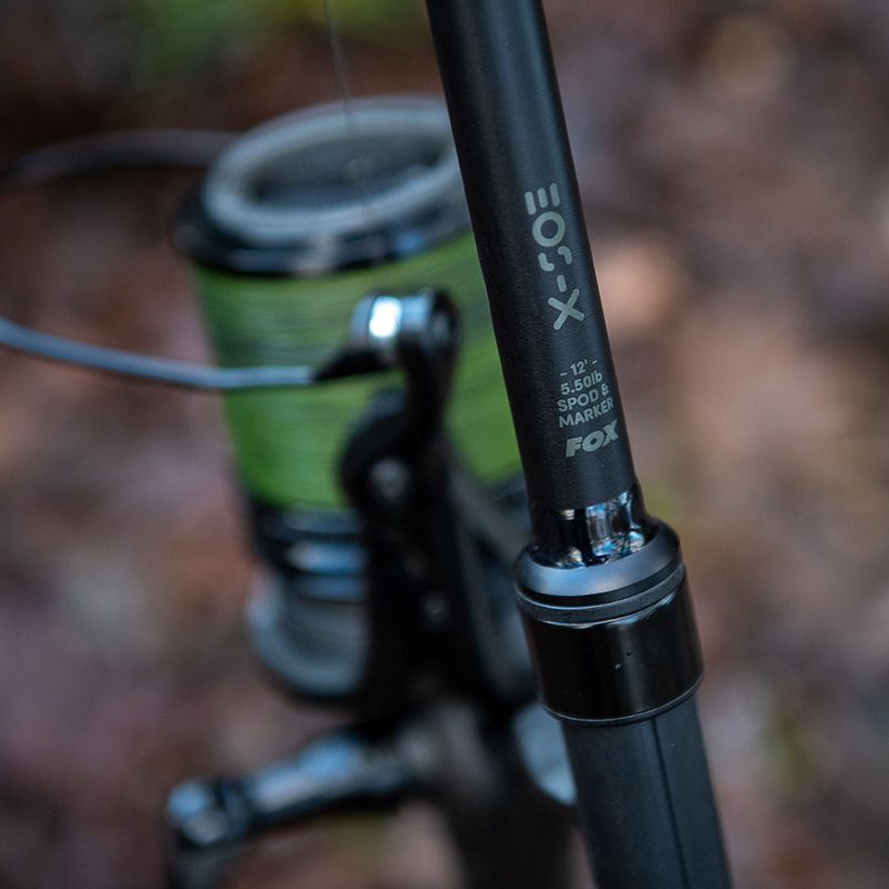 Fox EOS X Spod & Marker Rod 12ft – 5.50lb, a dedicated Spod & Marker edition of the latest Fox EOS X series. Featuring a lightweight low resin carbon fibre build that produces a stiffened responsive blank. Fitted out with minimal style Slik guides with 50mm butt guides. Finished with high quality 18mm reel seats, understated cosmetics and an ergonomic tapered butt grip with full Japanese Shrink Wrap Handle.