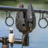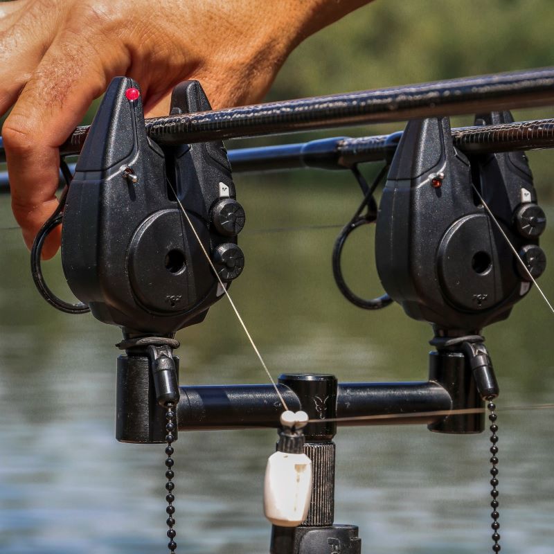 Fox Micron MX Presentation Sets, an updated, and much improved design available in two, three and four-rod options. With a switch that enables each individual alarm head to skip between six choices of high-vis LED colours. So no more having to choose when you buy your alarms, and stick to any particular LED’s. A power out socket allows you to add an illuminated indicator to run off the head unit to give a brilliant visual indication at night. Built to detect the wariest of fish with the d-tec sensing system and tru-run roller wheel registering every twitch. Arriving in a fitted lined presentation box that also includes a handy screwdriver and lanyard for your receiver.