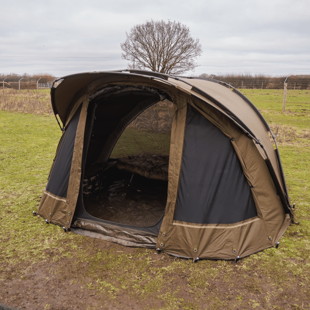 The new Fox Voyager 2 Man Bivvy has been designed with height, space and comfort in mind. Packed full of features, this bivvy is perfect for even the longest of carp sessions and will fit 2 of the largest fishing bed chairs or sleep systems and all your carp fishing tackle so you can fish in full comfort.
