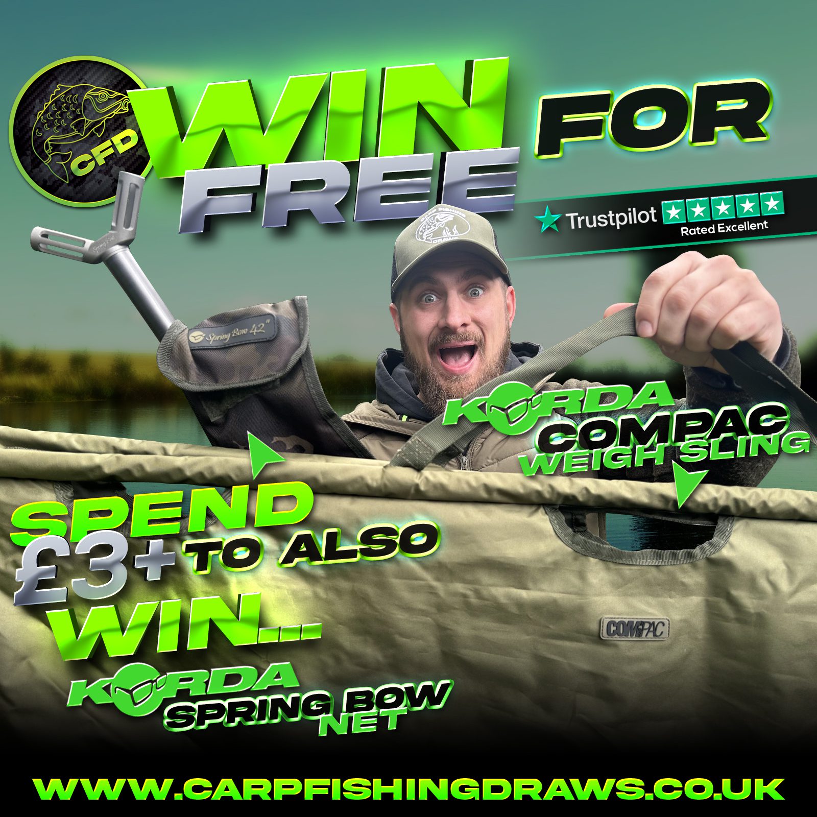 The live draw will take place on the Carp Fishing Draws Facebook page using Google’s random number generator to select the winning ticket number from all Entrants.