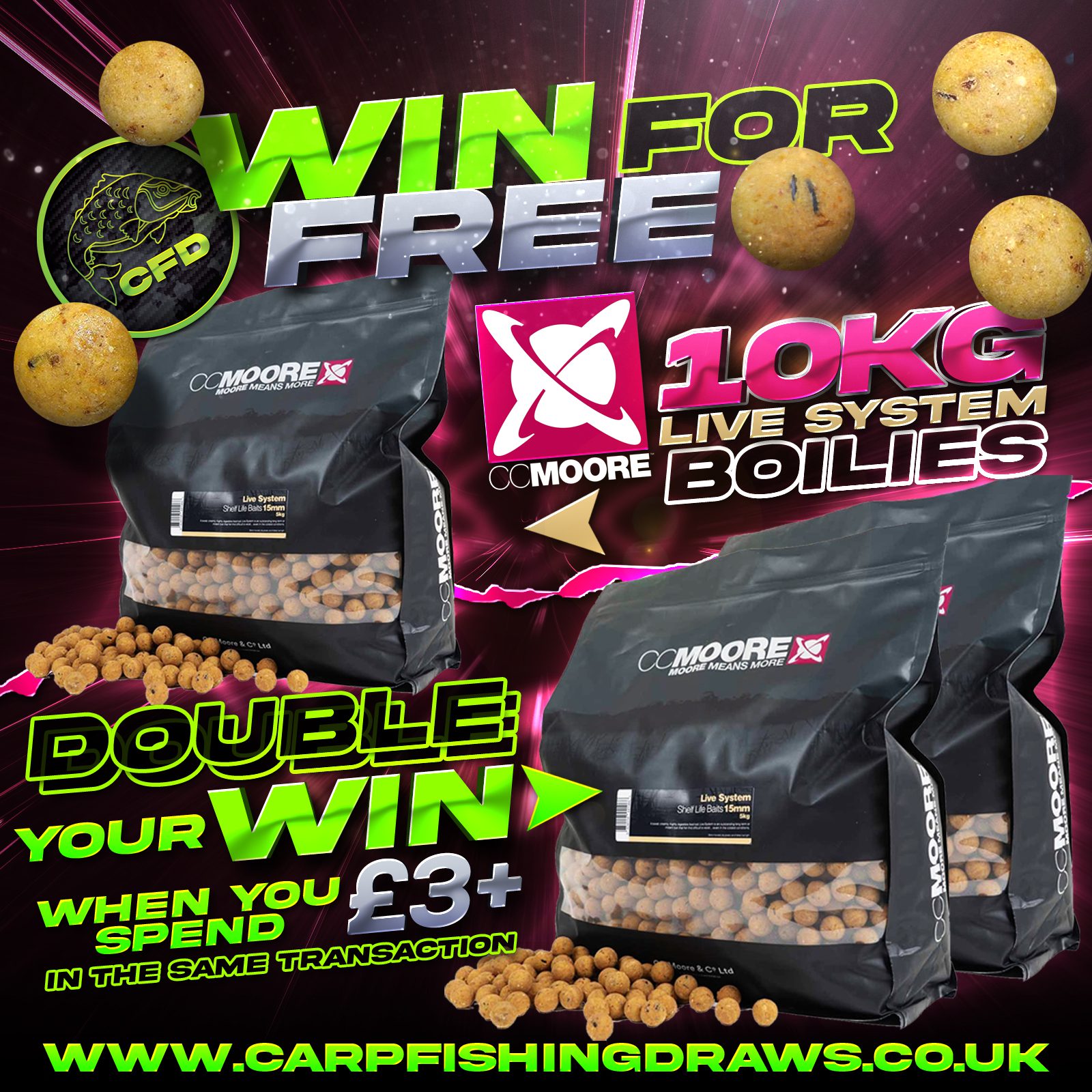 The live draw will take place on the Carp Fishing Draws Facebook page using Google’s random number generator to select the winning ticket number from all Entrants.